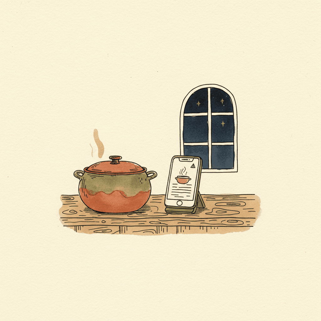 Cook anywhere, even without signal. Your library, grocery list, and timers keep working. Everything syncs when you're back online.
